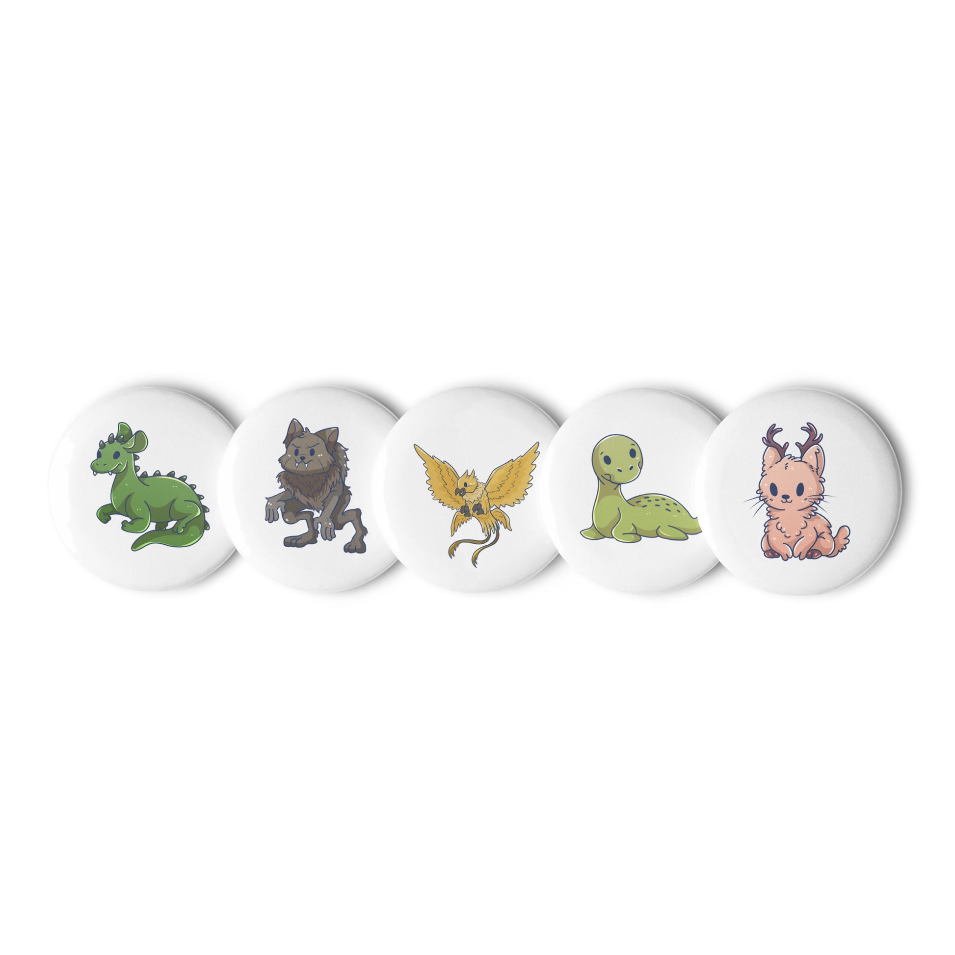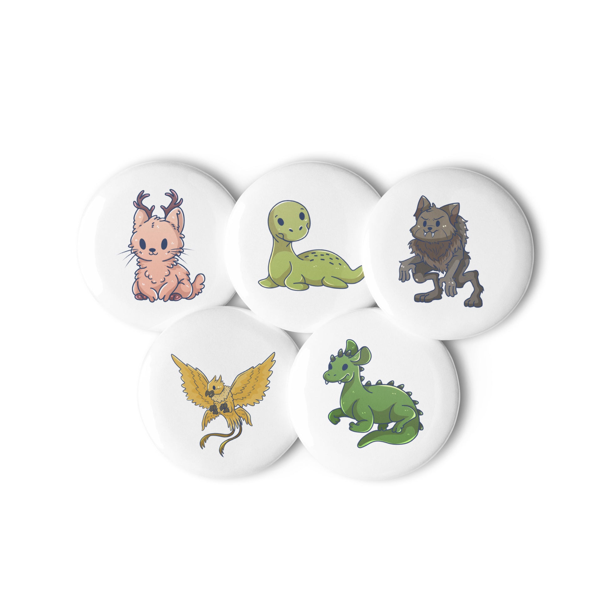 5 Count Set of Pin Buttons featuring Adorable Cryptids